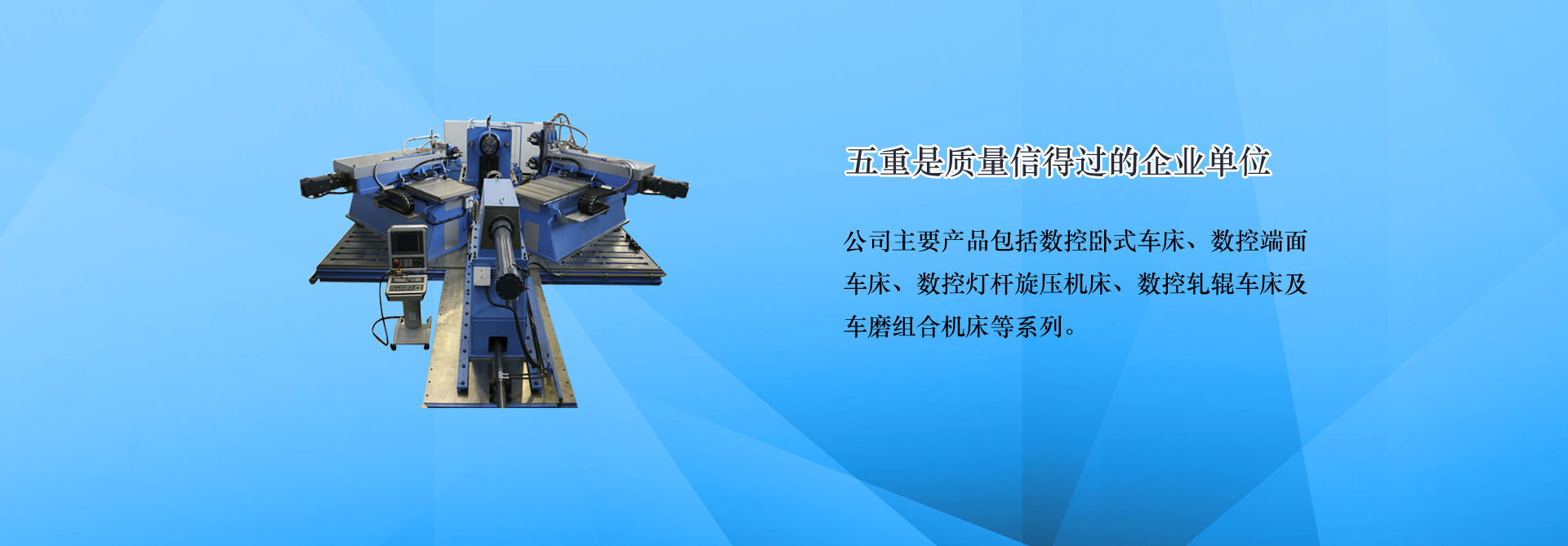 ÇൺÎåÖØÊý¿Ø»ú´²ÓÐÏÞ¹«Ë¾£¨Ô­ÇൺµÚÎåÖØÐÍ»úе³§£©ÊÇÒ»¼Ò¼¯¿ÆÑУ¬Éú²ú£¬ÏúÊÛΪһÌåµÄÊý¿Ø»ú´²Éú²úÆóÒµ£¬Ö÷Òª²úÆ·£º¶ËÃæ³µ´²,Êý¿Ø¶ËÃæ³µ´²,³µÏ³¸´ºÏ»ú´²,³µÄ¥×éºÏ»ú´²,½º¹õÄ¥´²,µØ°õÒ£¿ØÆ÷,Êý¿ØÐýѹ»ú¡£Á¬Ðø¶àÄê±»ÆÀΪÇൺÊÐÐÅÓÃÆóÒµ¡¢ÖÊÁ¿Ðŵùýµ¥Î»¡£¹«Ë¾Î»ÓÚÇൺ¹ú¼ÊÖÐСÆóÒµ¹¤ÒµÔ°£¬µØÀíλÖÃÓÅÔ½£¬¾àÁ÷ͤ·É»ú³¡½ö10¹«À¼ÃÇà¡¢ÈÙÎÚ¡¢ÇàÍþµÈ¶àÌõ¸ßËÙ¹«Â·¾­¹ý£¬½»Í¨Ê®·Ö±ãÀû¡£... [MORE + ]